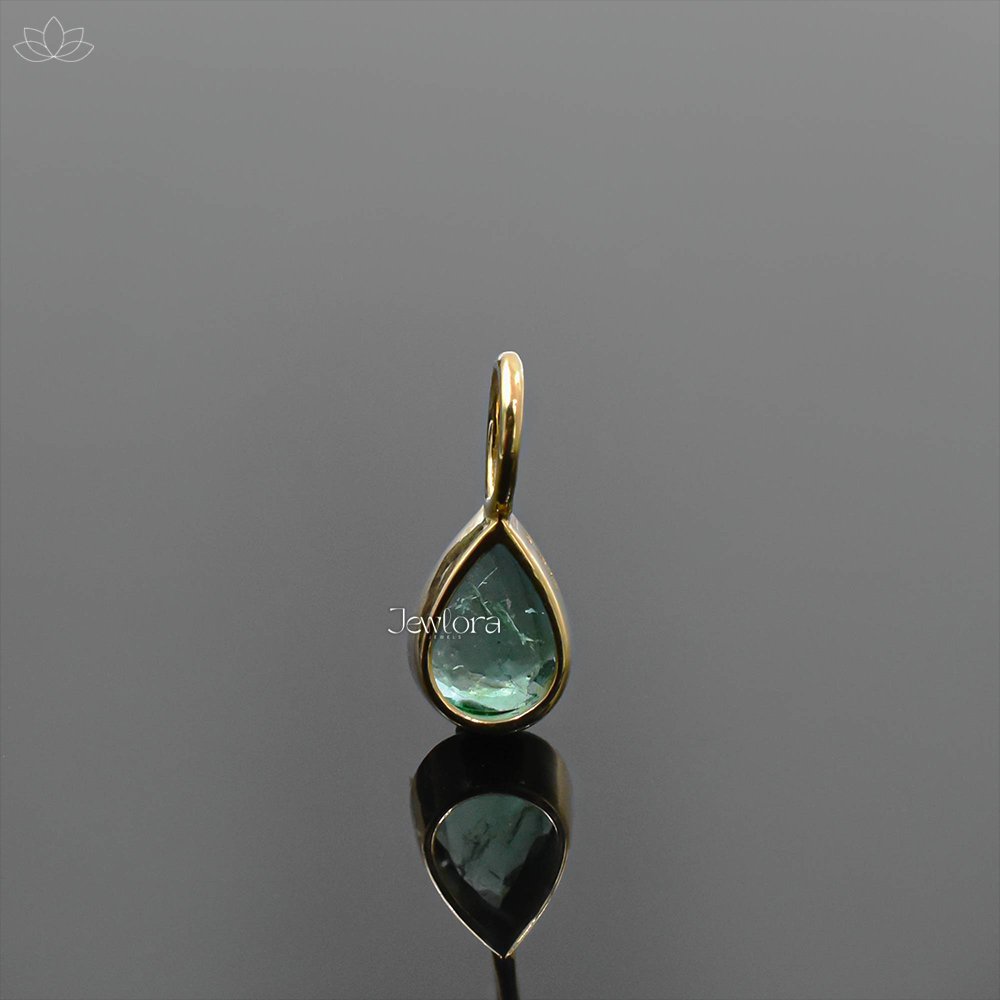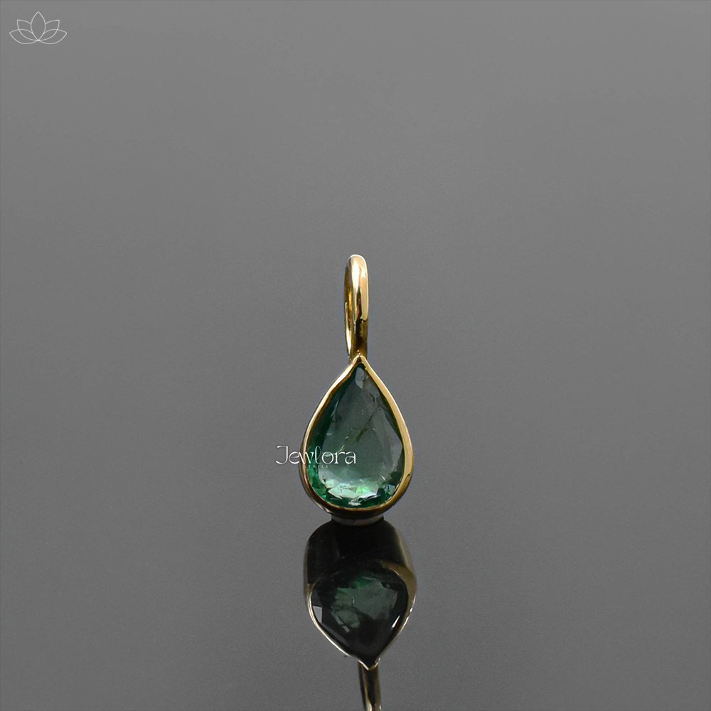 Handmade Emerald Charm – 14K Yellow Gold, 9K Gold & 92.5 Silver | 10x4mm