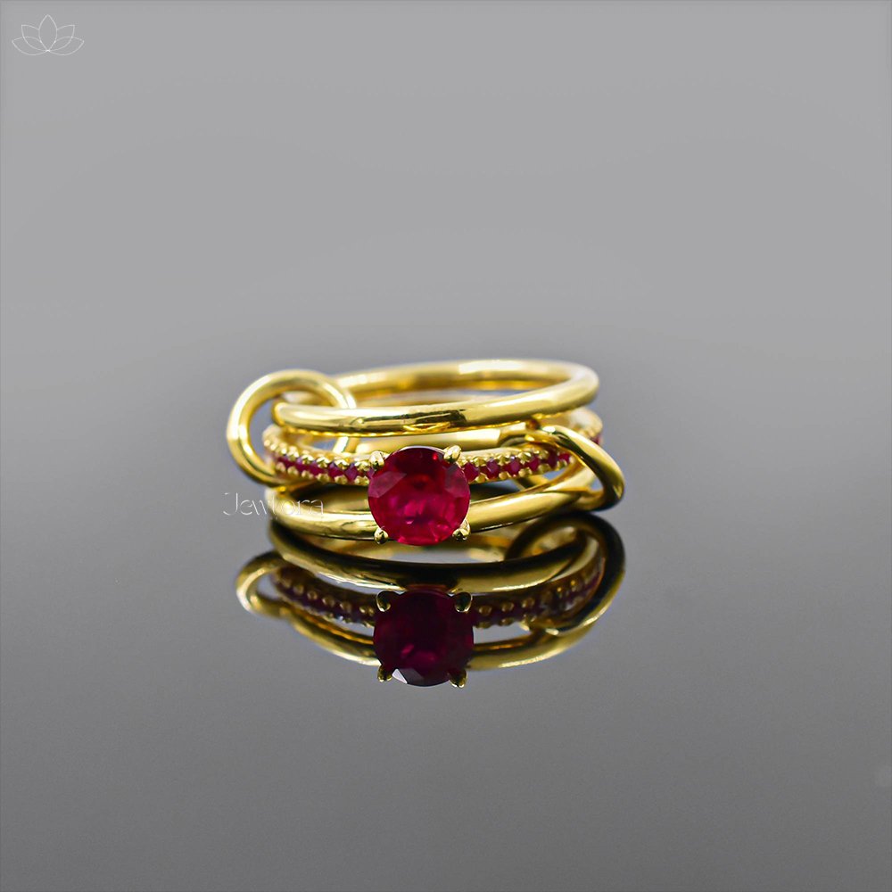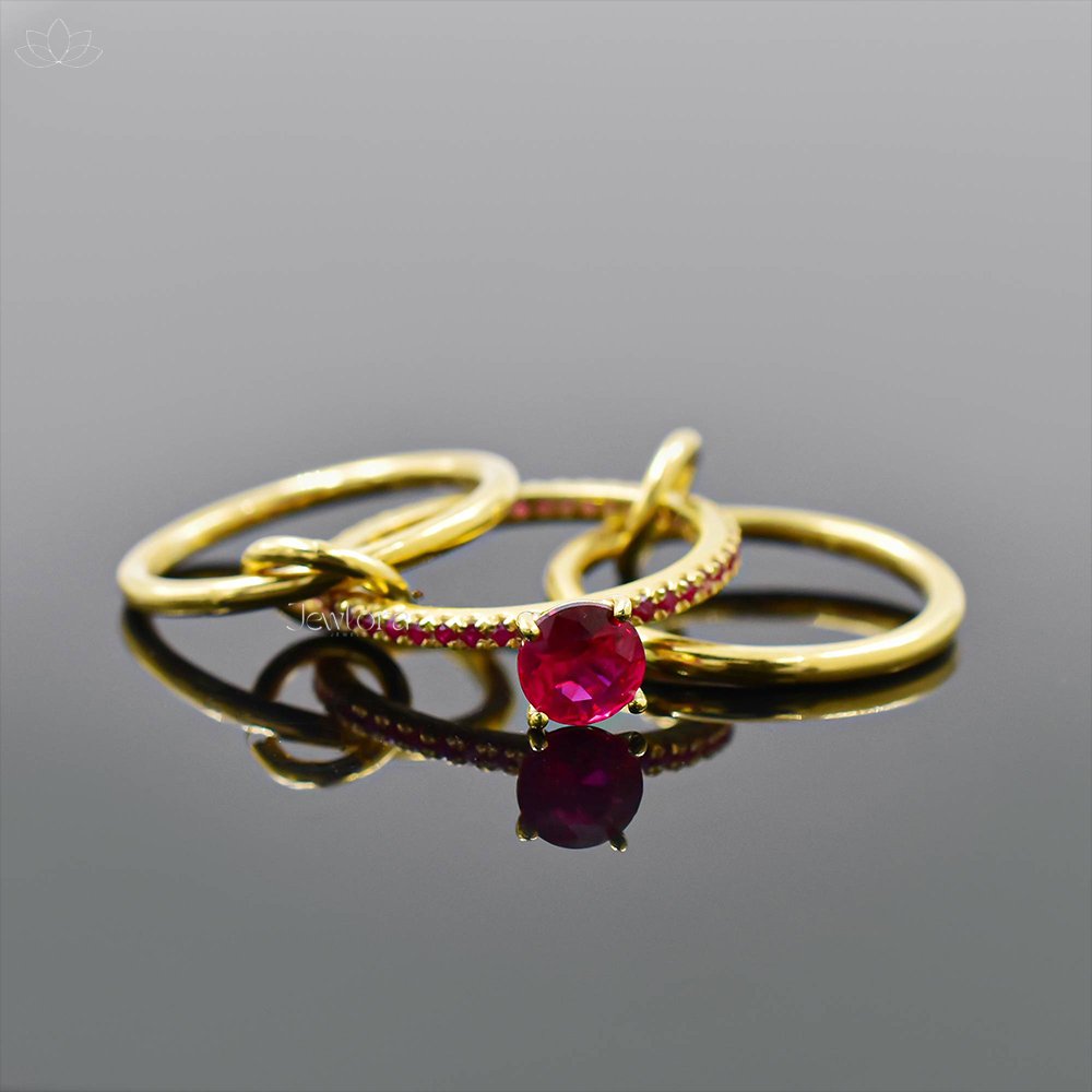 HomeShop925 Silver rings14K Yellow Gold Plated Ruby 3 Set Ring Jewelry