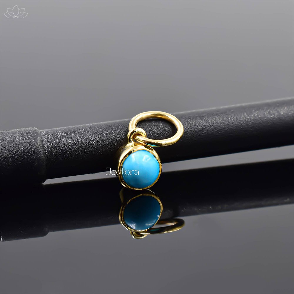 Handmade Turquoise Charm – 14K Yellow Gold, 9K Gold & 925 Silver | 10x5mm