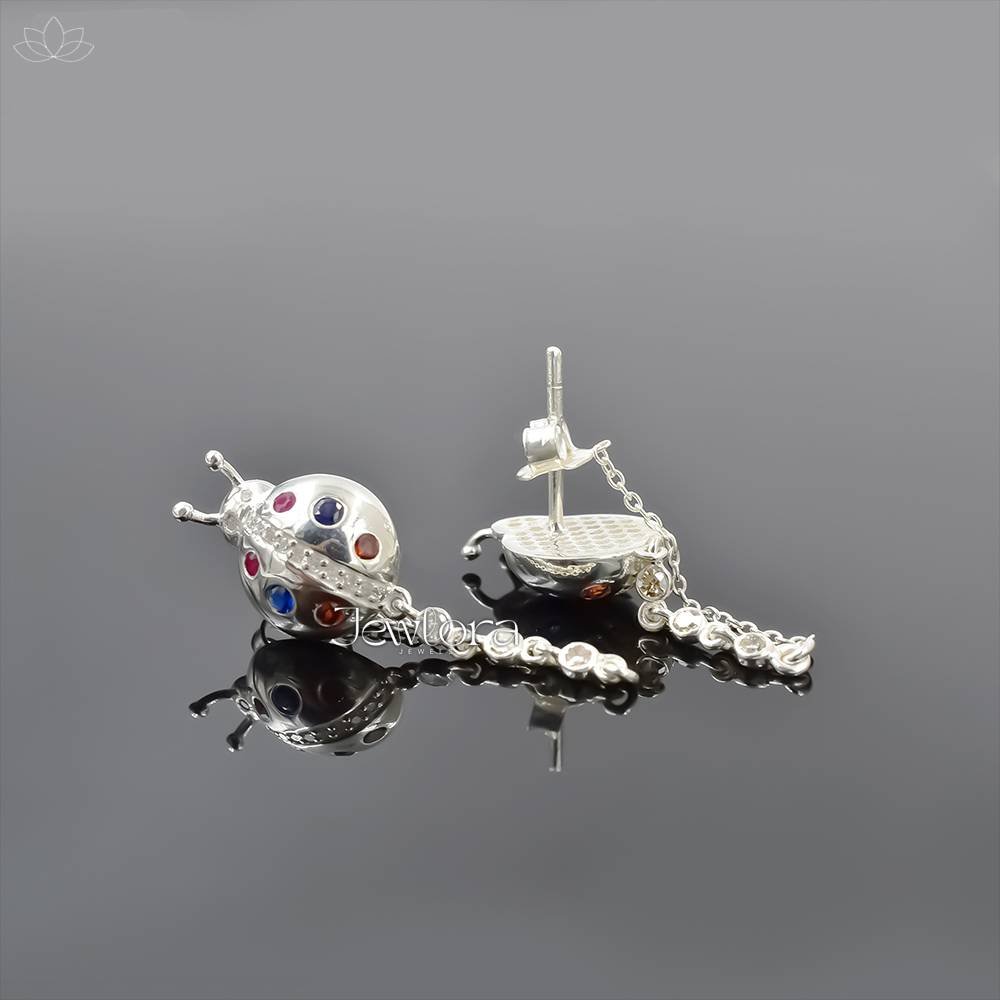 Handmade 92.5 Silver Earrings with Double Cut Diamond & Multi-Stone – 30x7mm