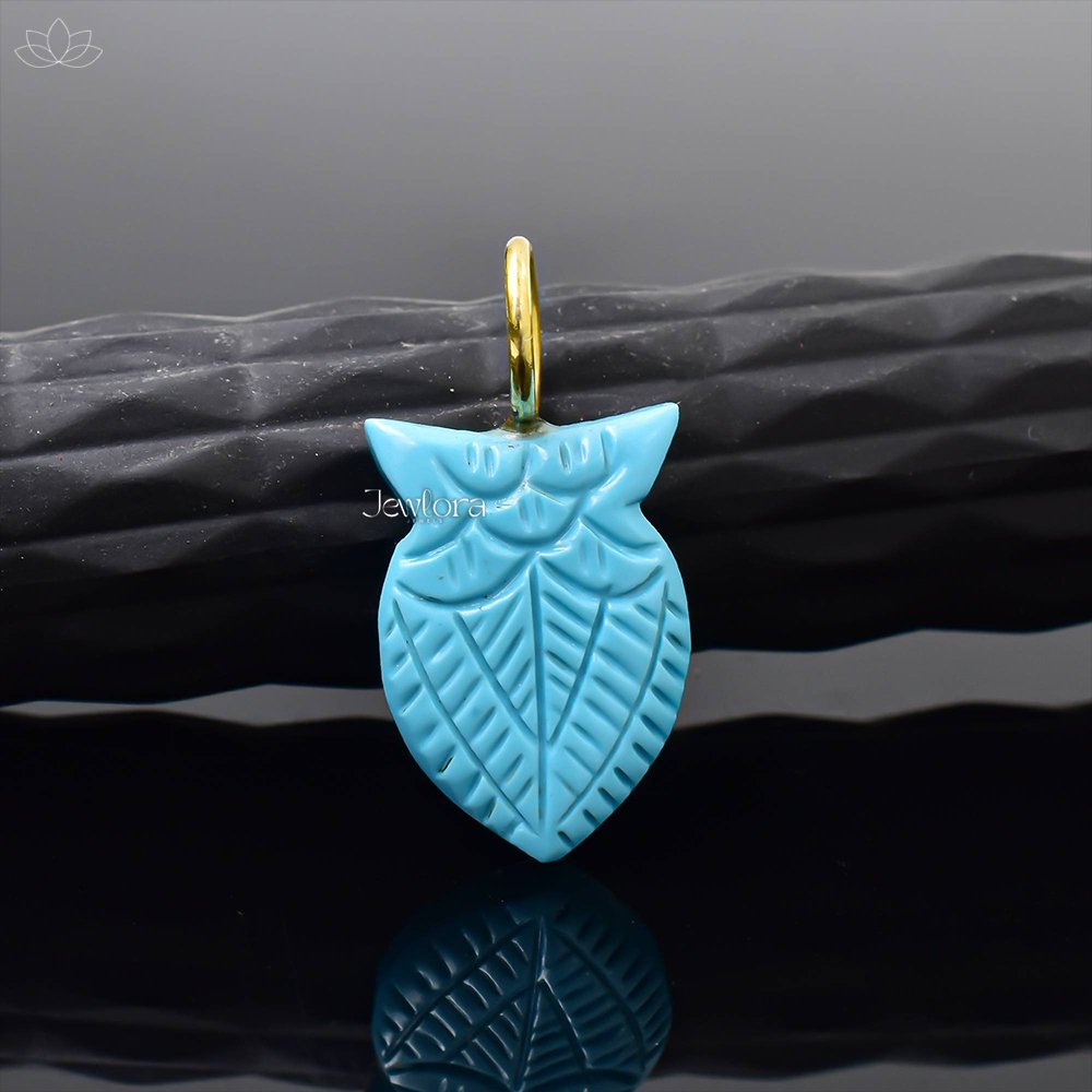 Handmade Turquoise Owl Pendant – Yellow Gold Plated 92.5 Silver | 25x12mm